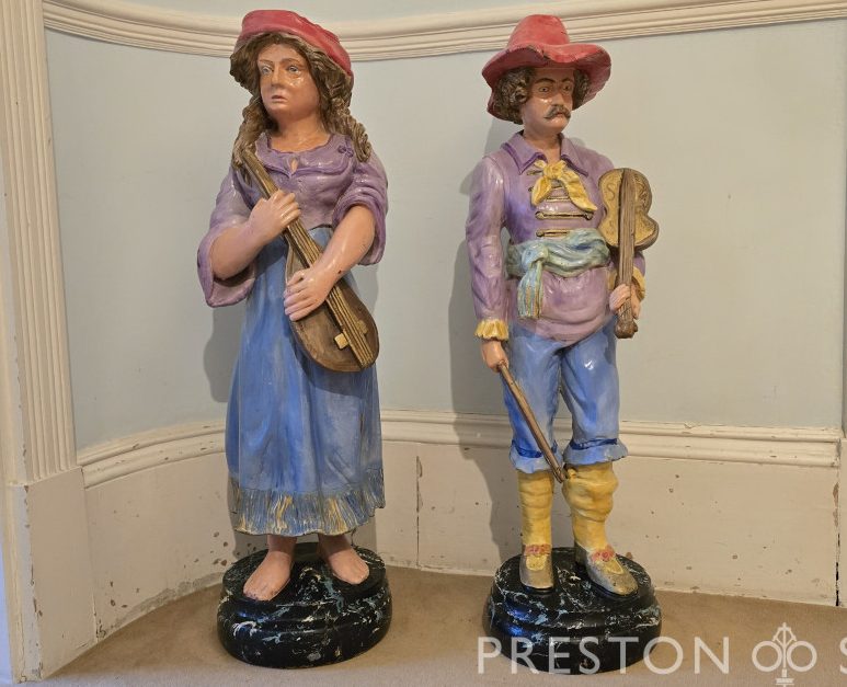 A pair of original carved wood figures from a Gavioli fairground organ of c1900 – 1914