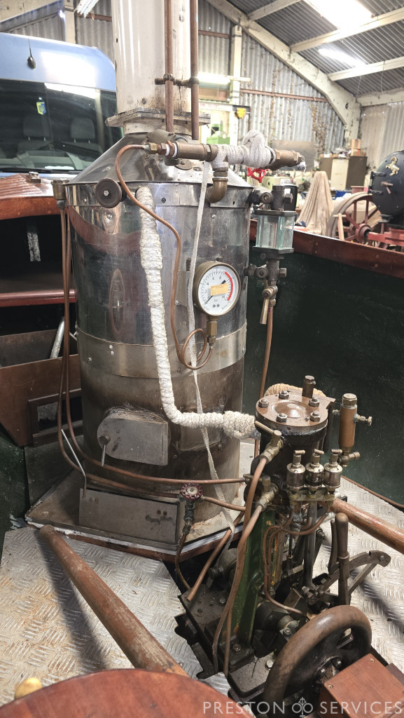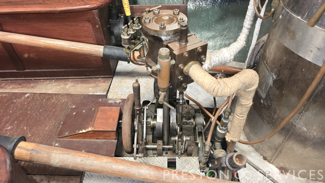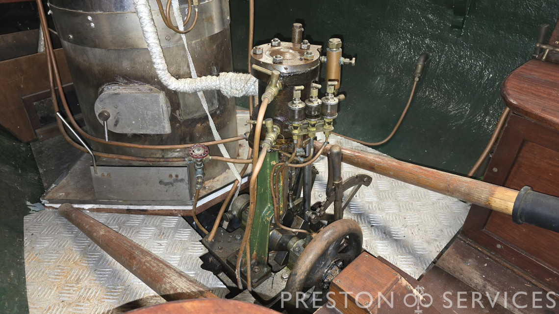 - Engine triple expansion 4.1/2 + 7 x 6” stroke, with scotch boiler, currently oil fired. All steam auxiliaries.