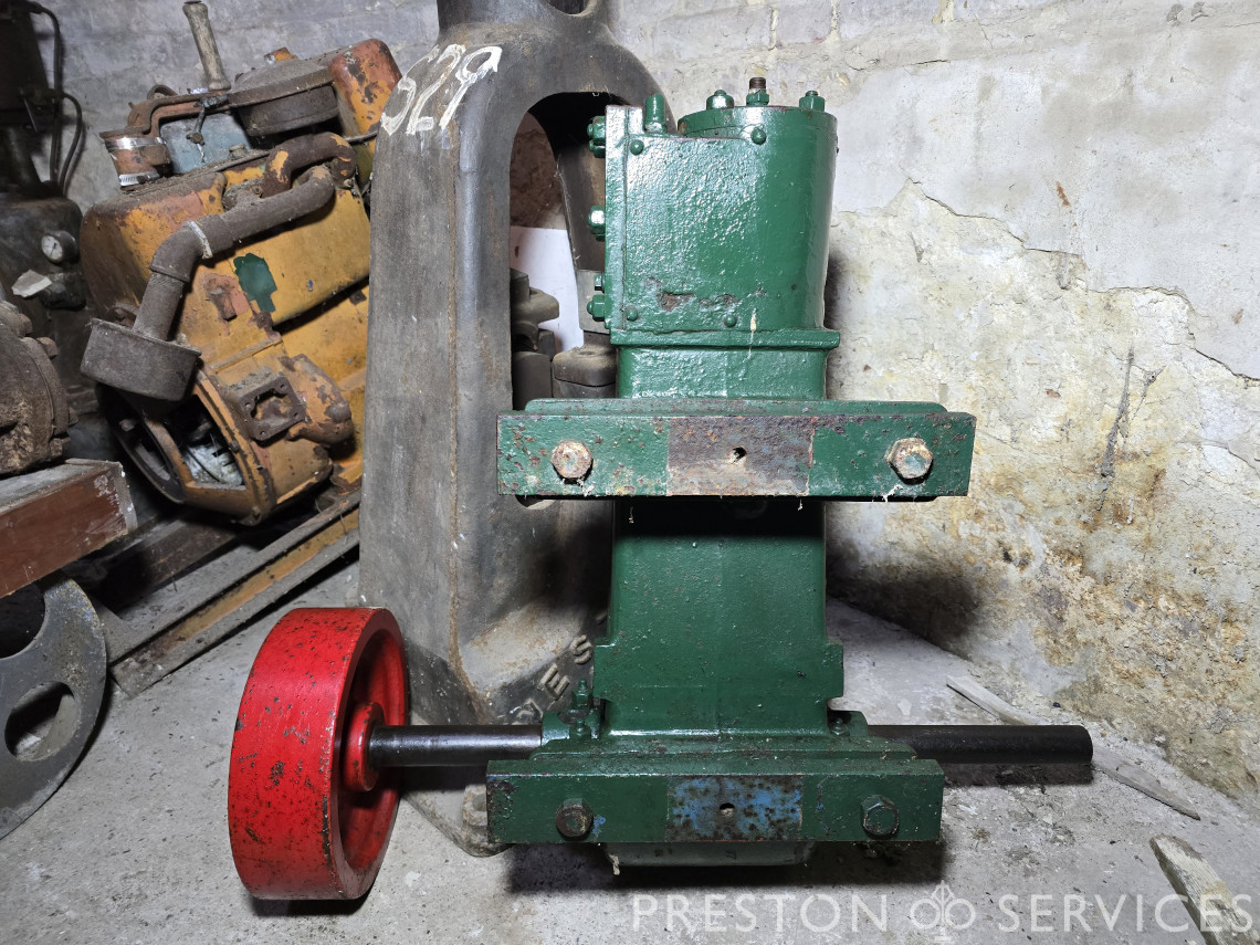 A single cylinder workshop wall engine, vertical mounting.